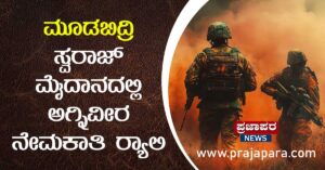 ಮೂಡಬಿದ್ರೆ: ಭಾರತೀಯ ಸೇನೆಯ ಅಗ್ನಿವೀರ ನೇಮಕಾತಿ ರ್ಯಾಲಿಯನ್ನು ದಕ್ಷಿಣ ಕನ್ನಡ ಜಿಲ್ಲೆಯ ಮೂಡಬಿದ್ರಿಯಲ್ಲಿರುವ ಸ್ವರಾಜ್ ಮೈದಾನದಲ್ಲಿ 2026ರ ಜನವರಿ…